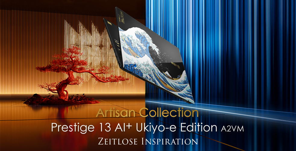 Der Prestige 13 AI+ Ukiyo-e Edition ist ab sofort in Deutschland im Handel verfügbar. Die limitierte Edition des Business-Laptops von MSI vereint edle Handwerkskunst mit moderner KI-Technik. Ergebnis sind ein kreatives Werkzeug und stilvolles Statement zugleich. Der 13,3-Zoll-Laptop wiegt nur 990 Gramm, bietet ein 2,8K-OLED-Display, professionelle Sicherheitsfunktionen und besonders ausdauernde Mobilität.