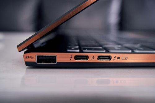Schnittstellen: Im Business-Einsatz darf keine Zeit beim Datenabgleich verloren gehen. Die Thunderbolt™ 4-Anschlüsse sorgen beim Summit E13 Flip Evo für schnelle Datenraten von bis zu 40 Gbit/s, verbinden externe Monitore und übernehmen auch die Stromversorgung des Laptops per USB-C-Netzteil oder geeigneten Powerbanks. Die PCIe Gen4-Schnittstelle sorgt für eine schnelle Anbindung der M.2-SSD. Beim Funk-Netzwerk ist dank der Wi-Fi 6E-Technik maximale Zukunftstauglichkeit mit an Bord.