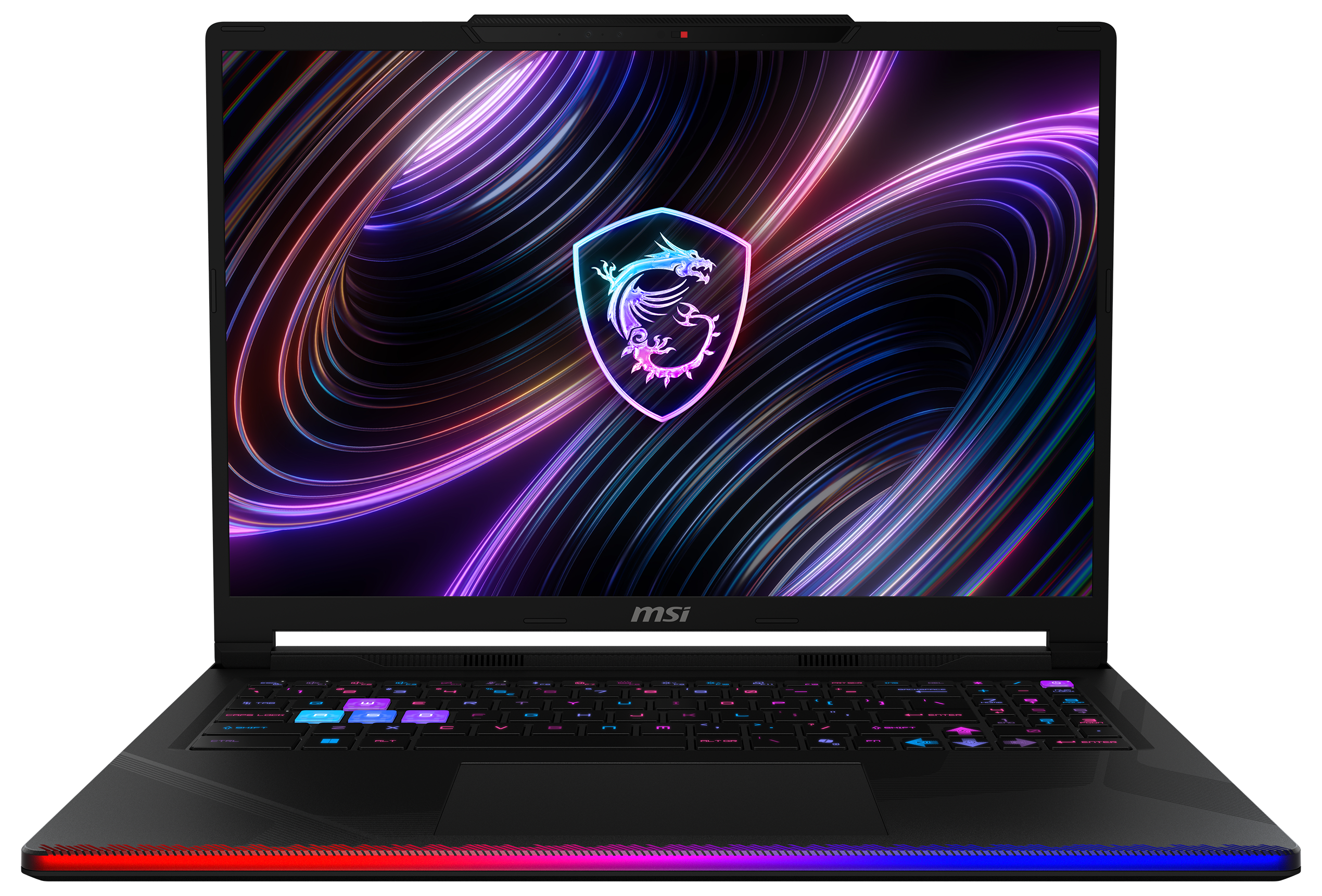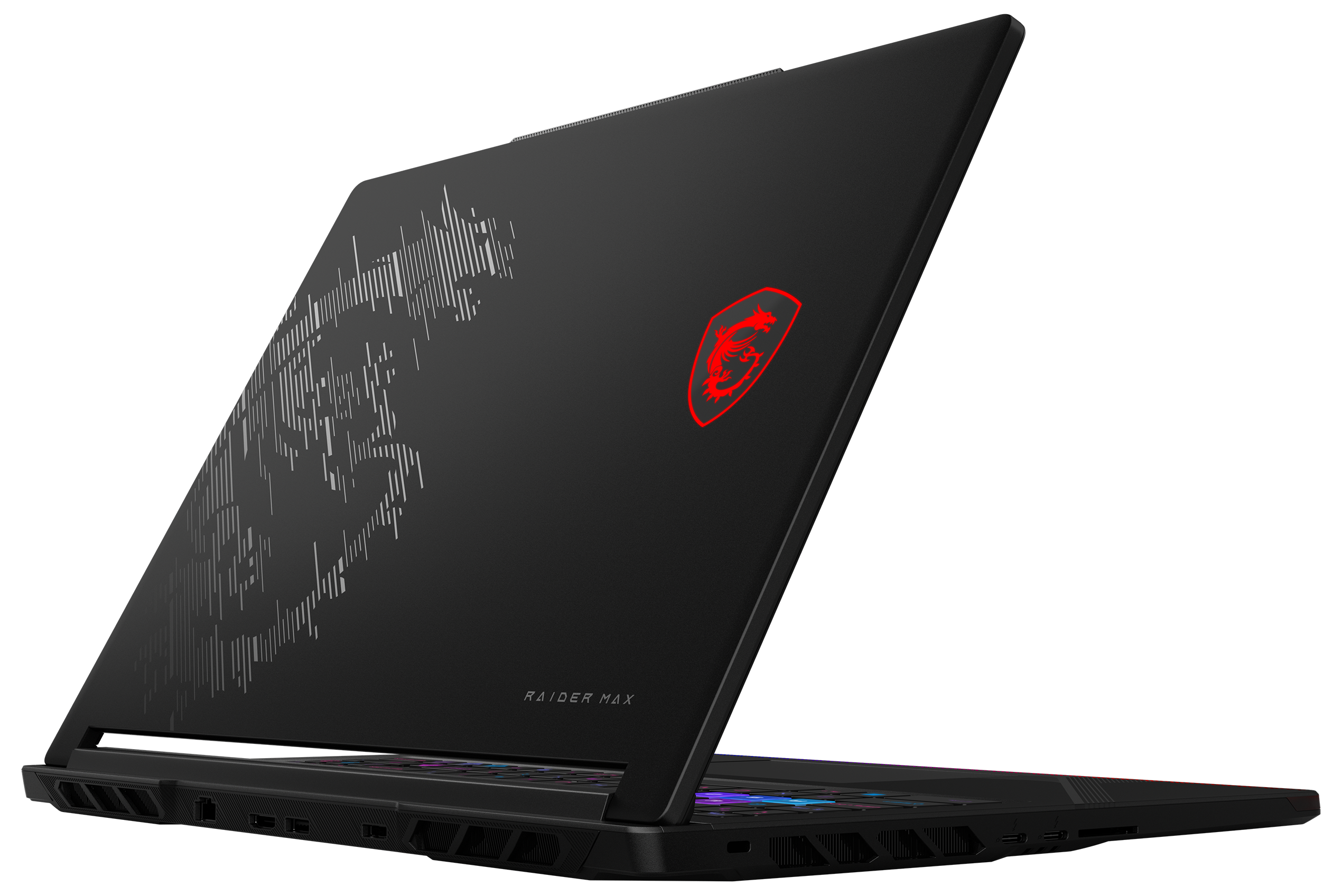 Blickfang im Gaming-Einsatz sind die RGB-Lichteffekte: Neben der Steelserie-Tastatur mit RGB-Einzeltastenbeleuchtung bietet der Raider 16 Max eine neue dünne RGB-Lightbar an der Vorderkante und die Möglichkeit, über MSI Mystic Light auch die Farbe des Drachen-Logos auf dem Cover nach individuellem Gusto zu steuern.