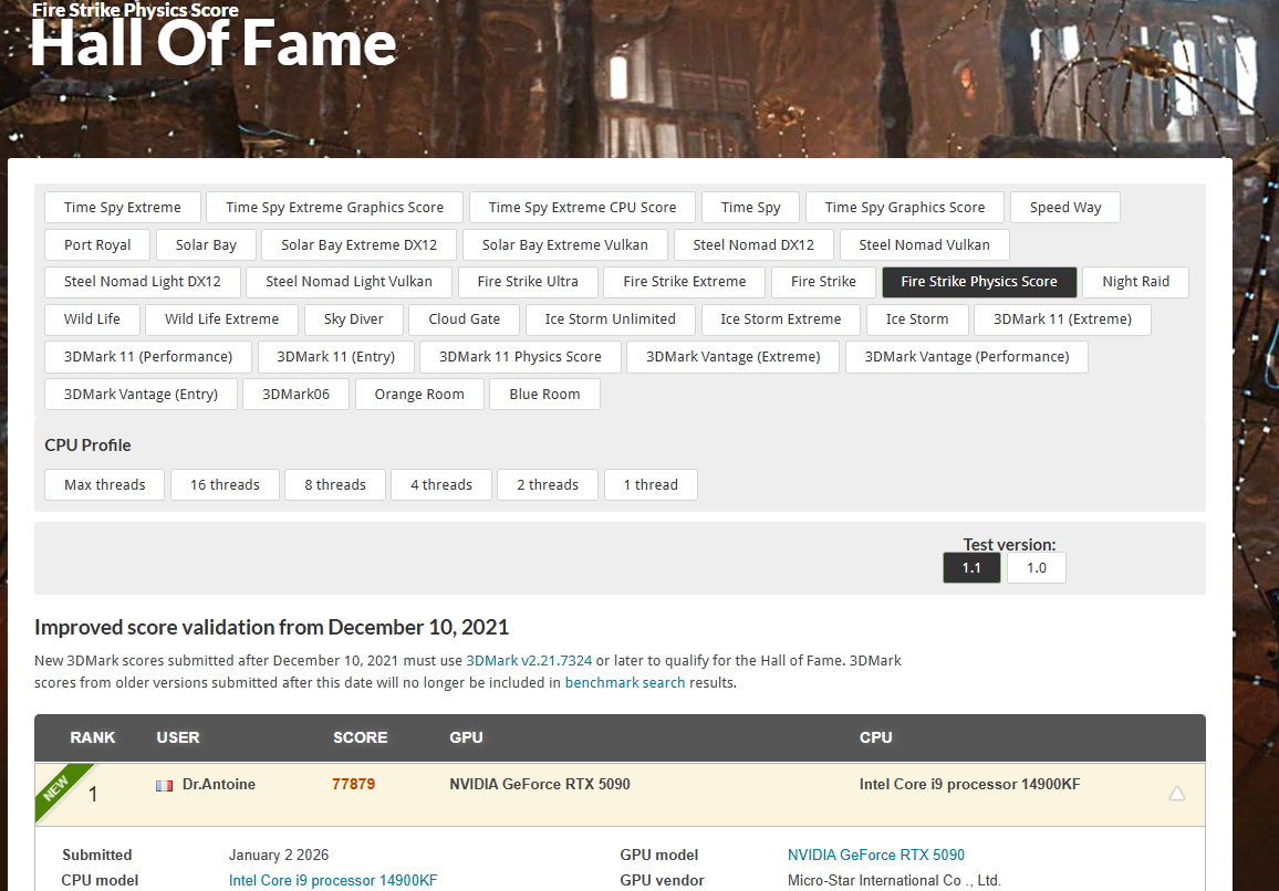 9 | 3Dmark Fire Strike Physics | 77879 Marks | 3Dmark |