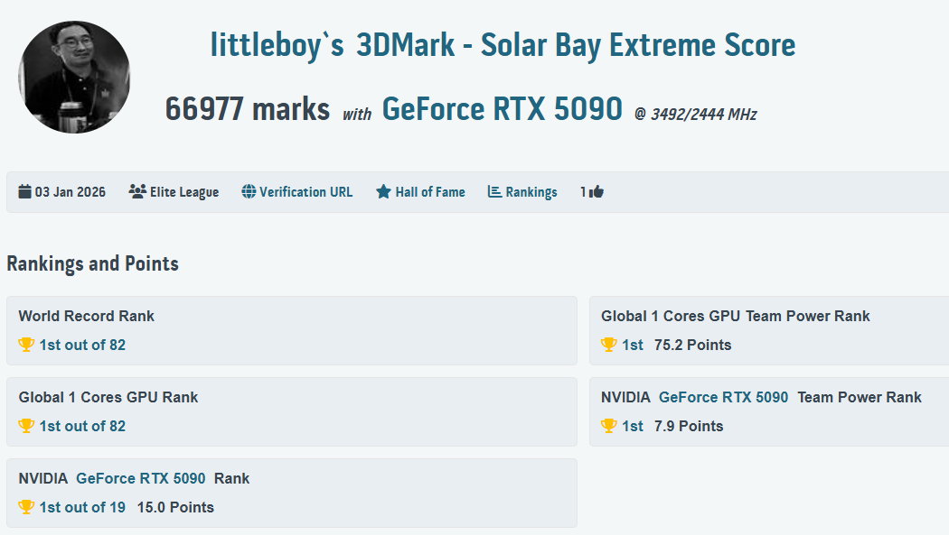 3 | 3DMark Solar Bay Extreme | 66977 Marks | HWBOT |