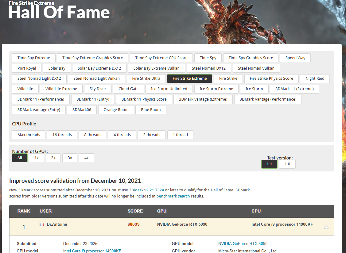 7 | 3Dmark Fire Strike Extreme | 68039 Marks | 3Dmark |