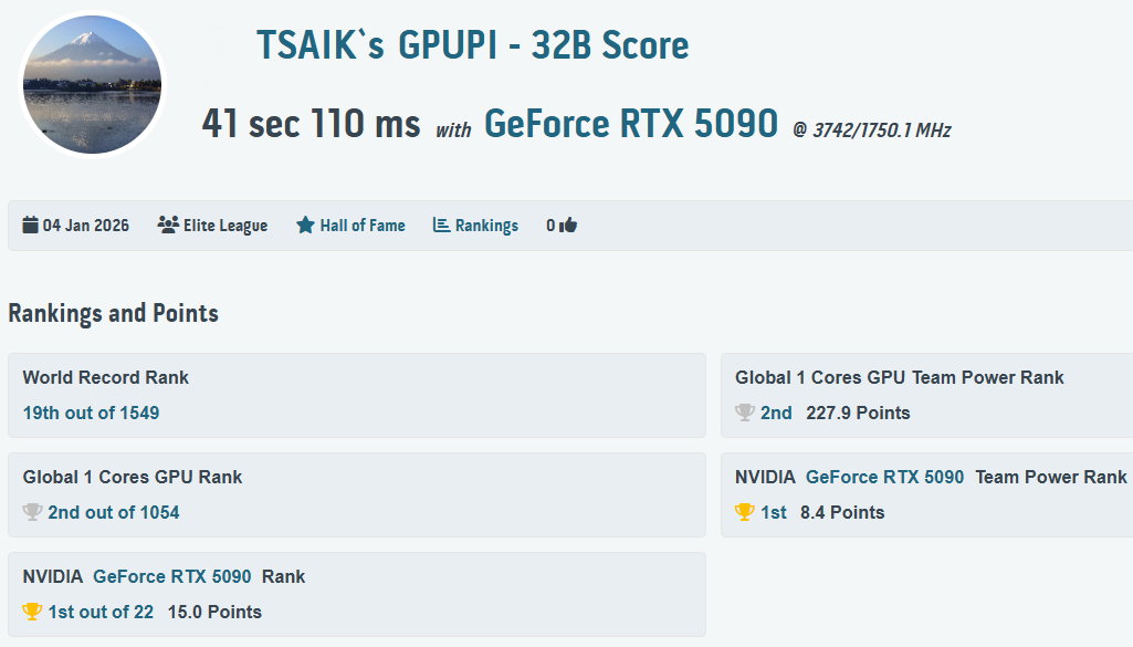 11 | GPUPI - 32B | 41 sec 110 ms | HWBOT |