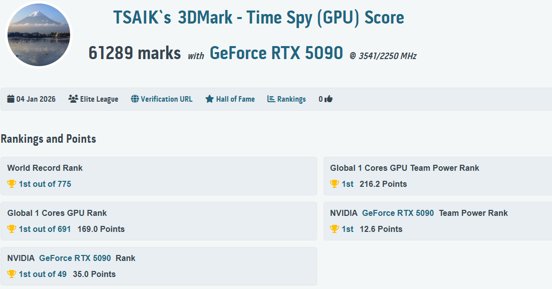 14 | 3DMark Time Spy (GPU) | 61289 Marks | HWBOT |