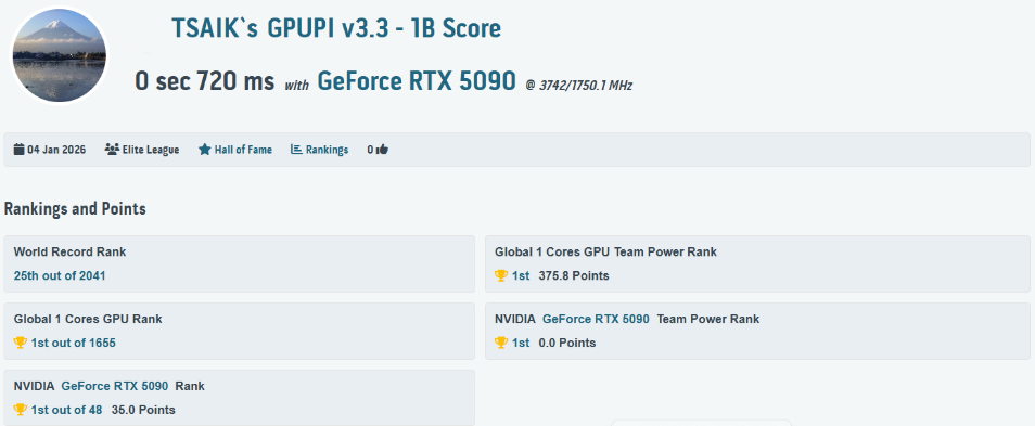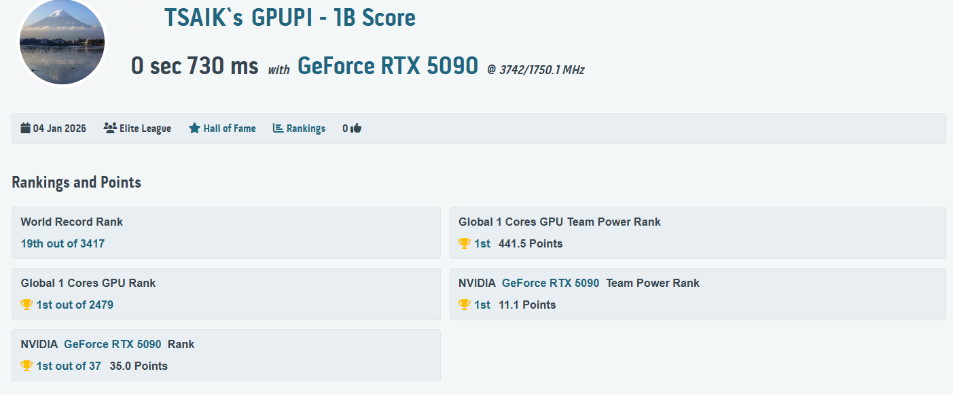 12 | GPUPI v3.3 - 1B | 0 sec 720 ms | HWBOT |